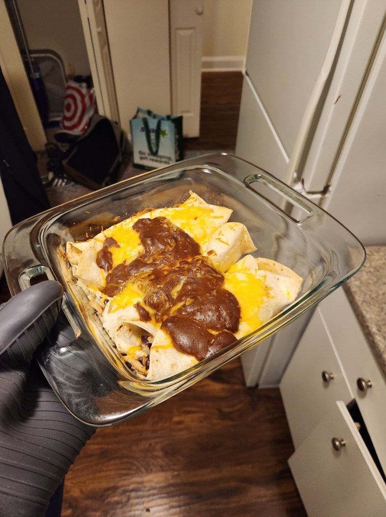 This was one of my favorite things on the list. The homemade enchilada sauce was fun to make because I put in tomato sauce and apple cider vinegar and thought, “There is no way this will be edible” and in the last 5 minutes it turned out great.