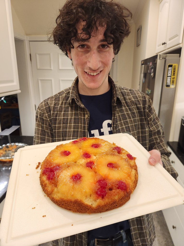 If you were wondering what was the hardest letter to find foods for it… it’s U. This is technically Pineapple Upside Cake but I changed the title and lied to you so I could move on. It might not be the prettiest cake or the tastiest…