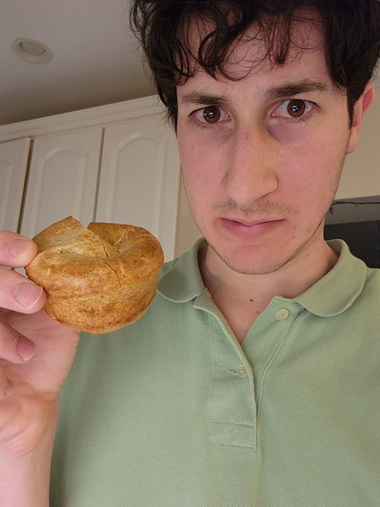 Leave it to the British to make one of the most unappetizing desserts imaginable. Baked dough with meat drippings. I thought it was gonna be like fun vanilla pudding but no, it’s really just a biscuit without the butter.
